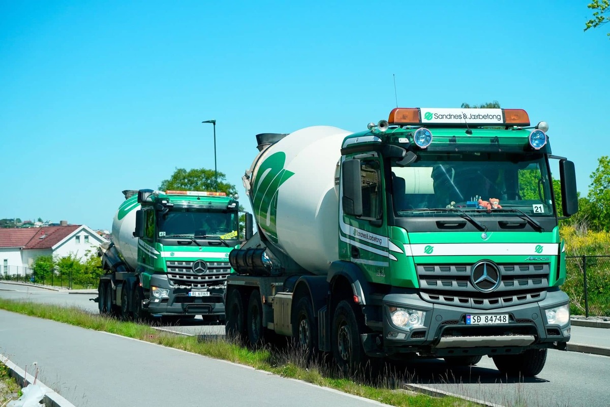 Transporten fra blandingsverk til byggeplass er viktig. Les mer om våre biler og utstyr.
